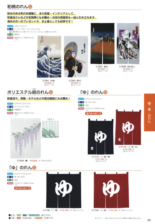 和柄のれん(助六) 上西産業S-7063のサイズ表