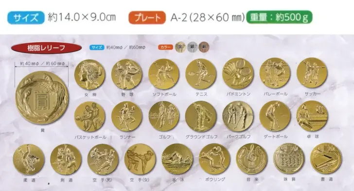 ・選べるレリーフ(図柄&金・銀・銅)で用途に合わせてカスタマイズ可能