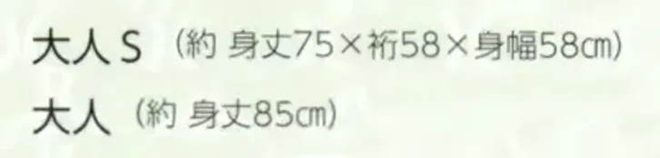 【大人S】身丈 約75cm × 裄 約58cm × 身幅 約58cm
