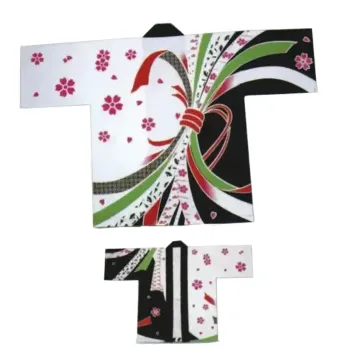 深い青と黒のグラデーションに、優雅に舞う蝶と流れる水の文様をあしらった上品な大人用半天です。金色の細やかな柄がアクセントとなり、落ち着きの中に華やかさが漂うデザイン。祭りはもちろん、舞台、パフォーマンス、和イベントの衣装としても映える一着です。