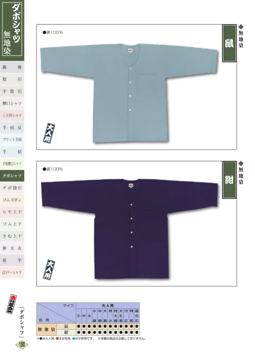 ダボシャツ(無地染)(大人) 鼠 江戸一DABOSHATSU-5のサイズ表