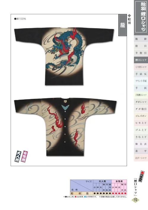 絵羽鯉口シャツ(大人)龍 江戸一EBA-KOI-3