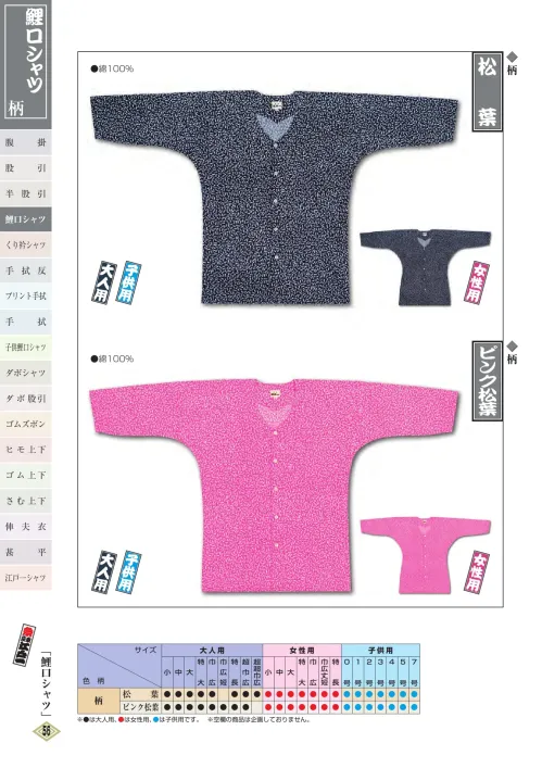 鯉口シャツ(柄)(大人) 松葉 江戸一GARA-KOI-1のサイズ表