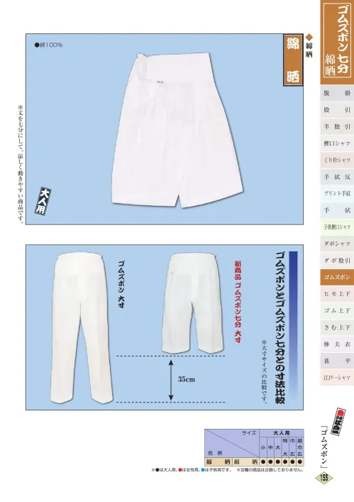ゴムズボン 七分(綿晒)(大人) 江戸一GOMUZUBON-7のサイズ表