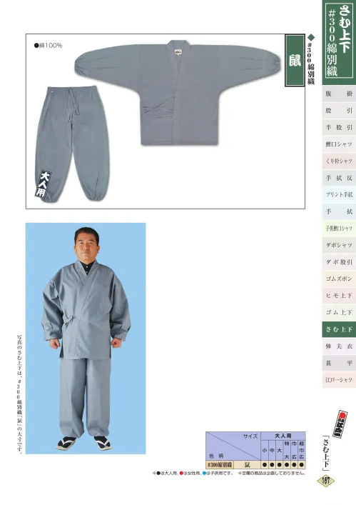 さむ上下(#300綿別織)(大人) 鼠 江戸一JOUGE-15のサイズ表