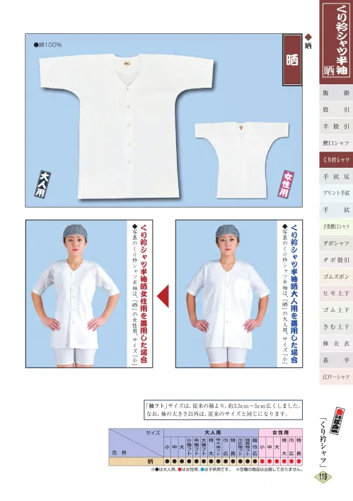 くり衿シャツ半袖(晒)(大人) 江戸一KURIERI-1のサイズ表