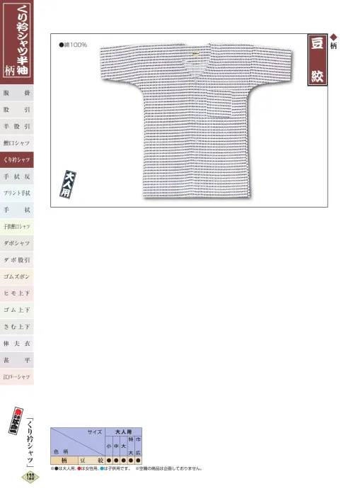 くり衿シャツ半袖(柄)(大人) 豆絞 江戸一KURIERI-2のサイズ表