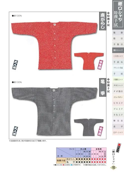 鯉口シャツ(特撰手拭)(大人) 唐がらし 江戸一TOKUSEN-KOI-20