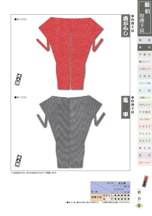 鯉口シャツ(特撰手拭)(女性) 唐がらし 江戸一TOKUSEN-KOI-20L