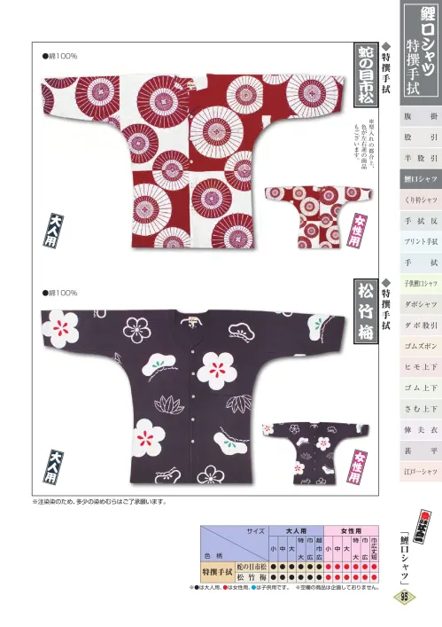 鯉口シャツ(特撰手拭)(大人) 松竹梅 江戸一TOKUSEN-KOI-4のサイズ表