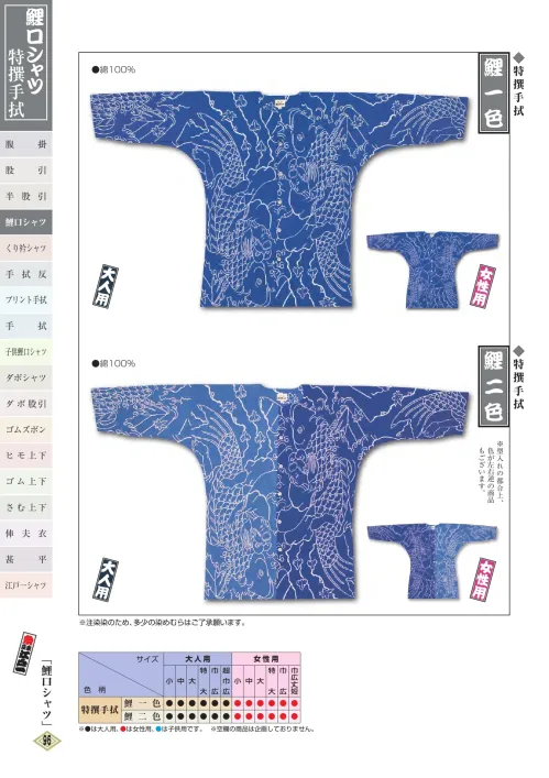 鯉口シャツ(特撰手拭)(女性) 鯉ニ色 江戸一TOKUSEN-KOI-6L