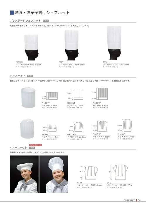 PS20111 プレステージシェフハット/200mm(50枚入り)