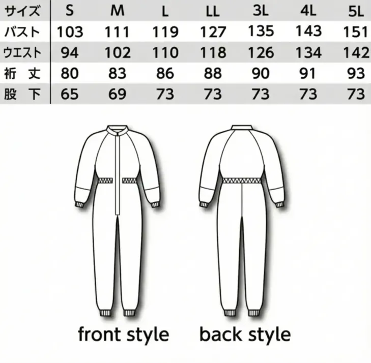 クリーンスーツ ガードナーCK102のサイズ表