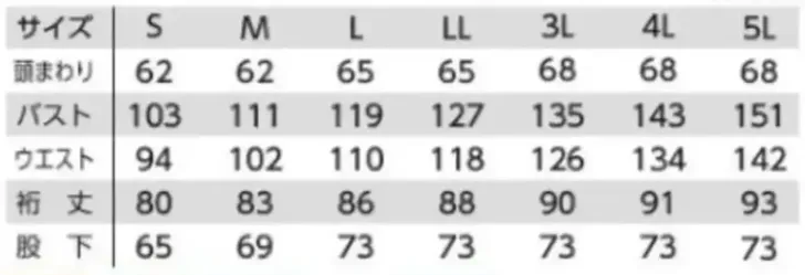 フード付クリーンスーツ ガードナーCK182のサイズ表