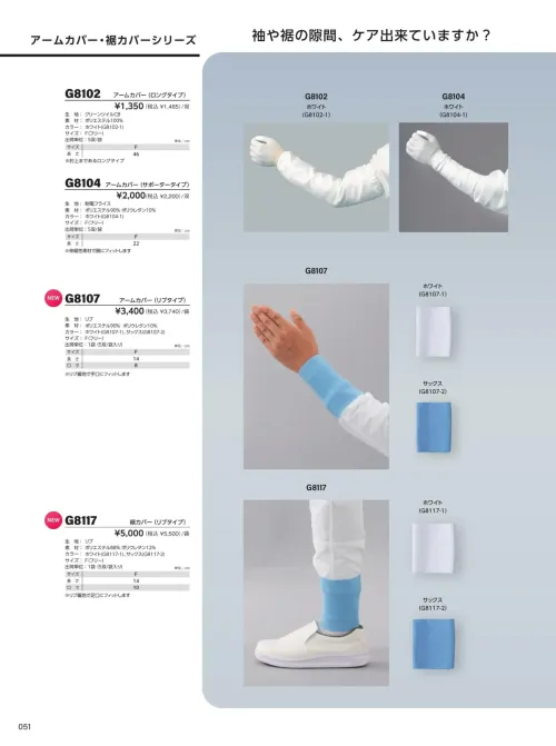 ズボン裾からの異物混入対策を目的としたアームカバー・裾カバーシリーズのリブタイプ裾カバーです。足首部分にリブ素材を採用することで、裾まわりにしっかりフィットし隙間を軽減。動作時のズレを抑え、食品工場やクリーンルームなど衛生管理が求められる現場で安心して使用できます。