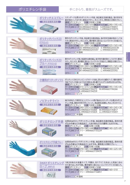 3WAYポリエチレングローブ(10,000枚入) 中部物産貿易3WP-01のサイズ表