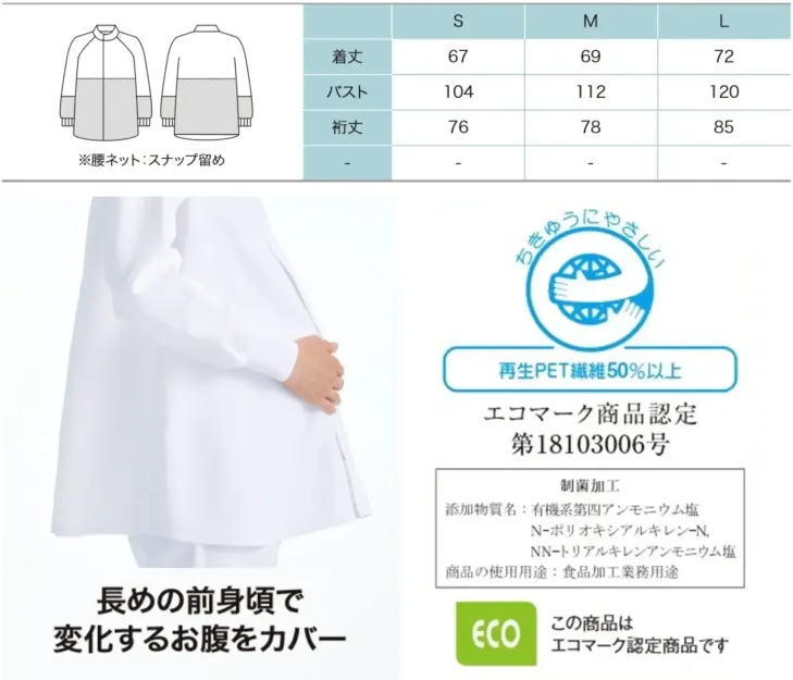 ■素材特長制菌加工 透け防止 吸汗速乾 制電 低発塵 エコ再生素材