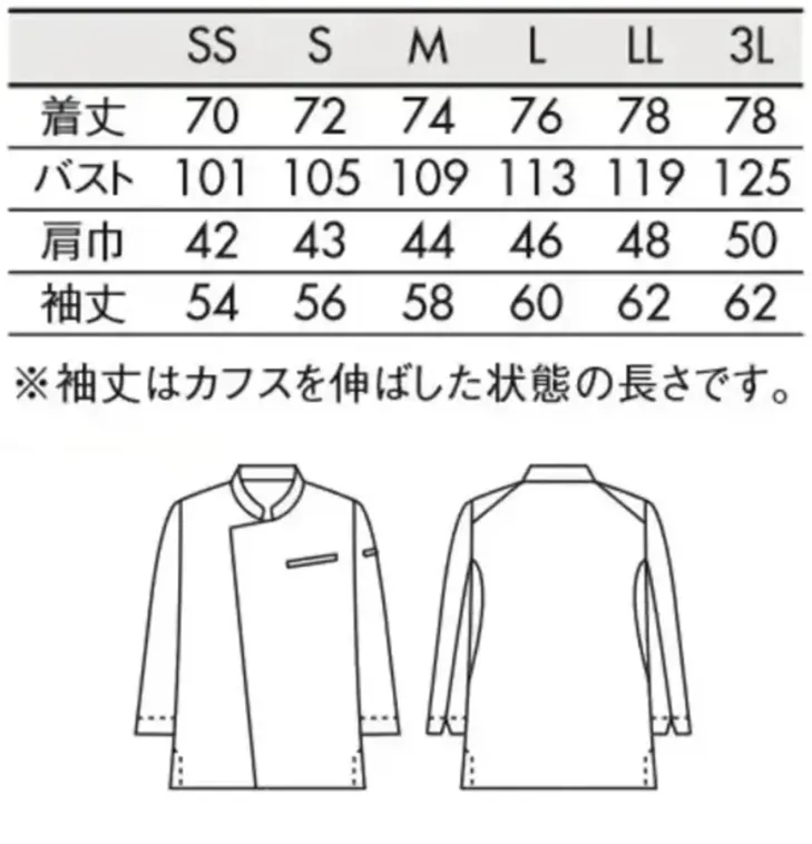 コックコート(長袖) 住商モンブランSC001-92のサイズ表