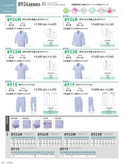 女子長袖上衣(ジャケット)(衿付) 三愛8924Rのサイズ表