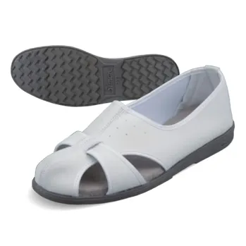 クリーンエースシリーズの静電気対策用スリッパで、クリーンルームや研究施設、電子部品や医薬品、食品製造など静電気管理が求められる環境に最適なモデルです。甲部の通気孔がムレを軽減し、導電布中敷と厚めのクッション材が足腰の負担をやわらげて快適性を高めます。ネームタグとサイズ表示付きで管理しやすく、作業現場での運用性にも優れています。