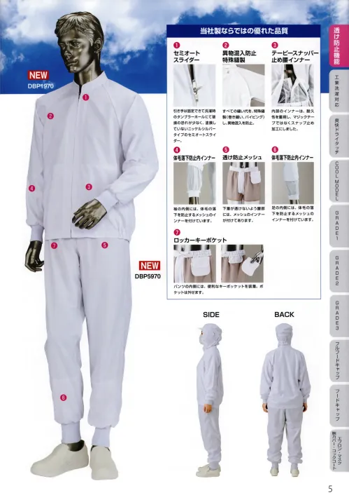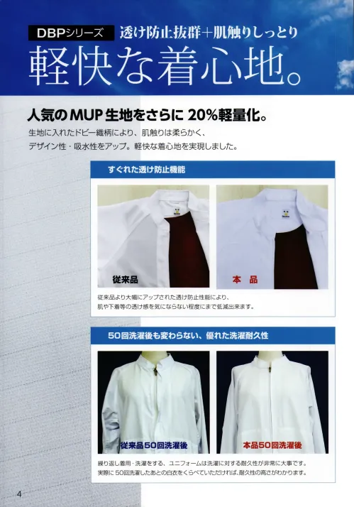 ■素材特長吸汗・速乾・涼感・低発塵・制電・軽量・透け防止・工業洗濯対応・点タッチドライ・ノンアイロン