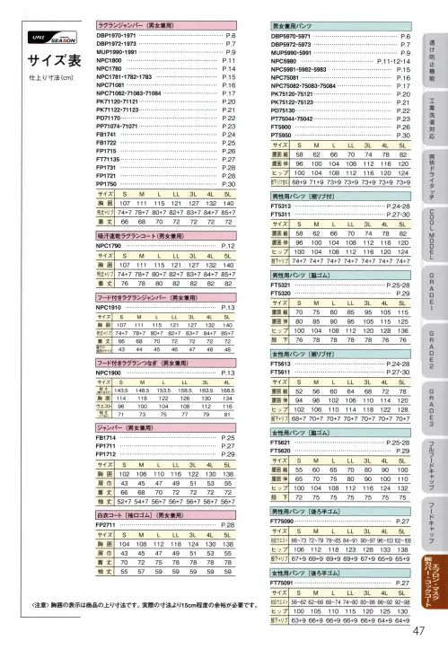 吸汗速乾イージーパンツ グリーン シーズンDBP5973のサイズ表