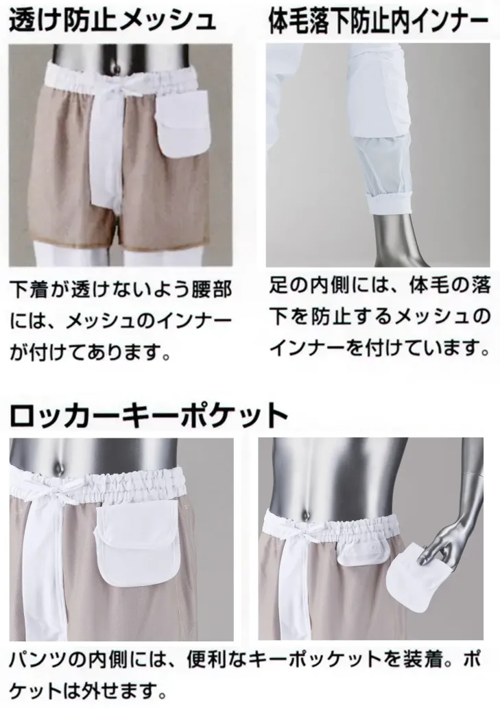 ■形状特長透け防止メッシュ・体毛落下防止内インナー・ロッカーキーポケット