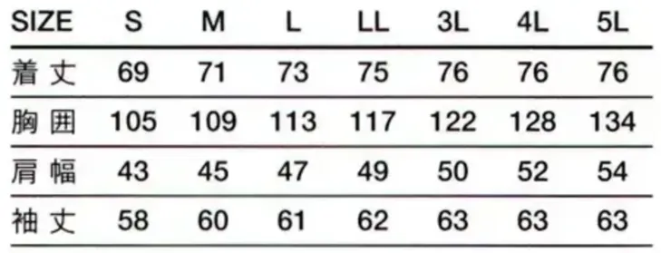 | 色 | サイズ | LL | 3L | 4L |