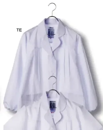 動きやすさと清潔感を兼ね備えた女子衿なし調理服 長袖 4210。シンプルなノーカラーデザインで、首元をすっきりと見せつつ快適な着心地を実現します。抗菌防臭加工により衛生的に使用可能。食品加工や給食施設など、衛生管理が求められる現場に最適な一着です。