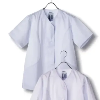 角衿仕様のきちんとしたデザインで、調理現場や給食施設などの職場に最適です。軽くて丈夫なツイル素材(ポリエステル65%・綿35%)を採用し、抗菌防臭加工により常に衛生的な状態をキープします。