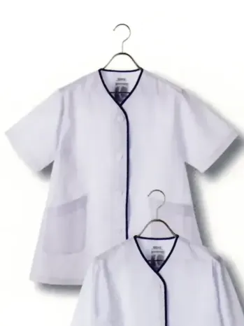 清潔感と機能性を兼ね備えた男子ラインコート 長袖 5210。ネイビーのパイピングがアクセントになったデザインで、シンプルながらも洗練された印象を与えます。抗菌防臭加工により常に清潔で快適な着心地をキープします。厨房や給食施設、食品工場など、衛生管理が求められる現場に最適です。