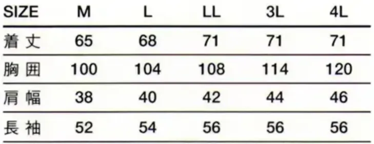 女子ラインコート 長袖 傳馬屋6210のサイズ表