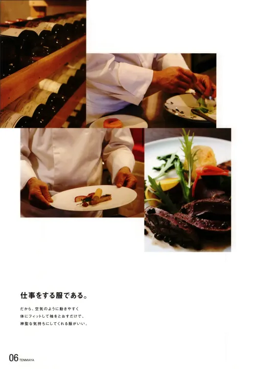 シンプルで飽きのこないデザインが魅力のコックコート。ポリエステル65%・綿35%のツイル素材を使用し、耐久性と着心地を両立。抗菌防臭加工が施されており、厨房やレストランなど常に清潔さが求められる現場に最適です。動きやすさを追求した設計で、長時間の作業も快適にサポートします。
