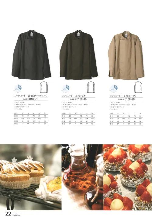 C100-16 コックコート 長袖(ダークグレー)