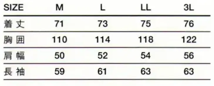 | 色 | サイズ | M | L | LL |