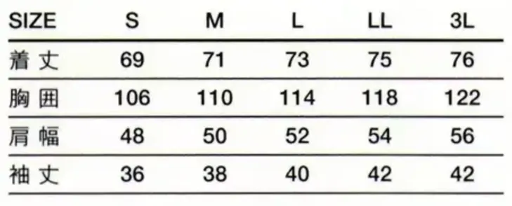 コックシャツ衿付 半袖(ブラック) 傳馬屋C212-15のサイズ表
