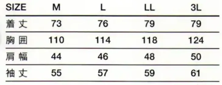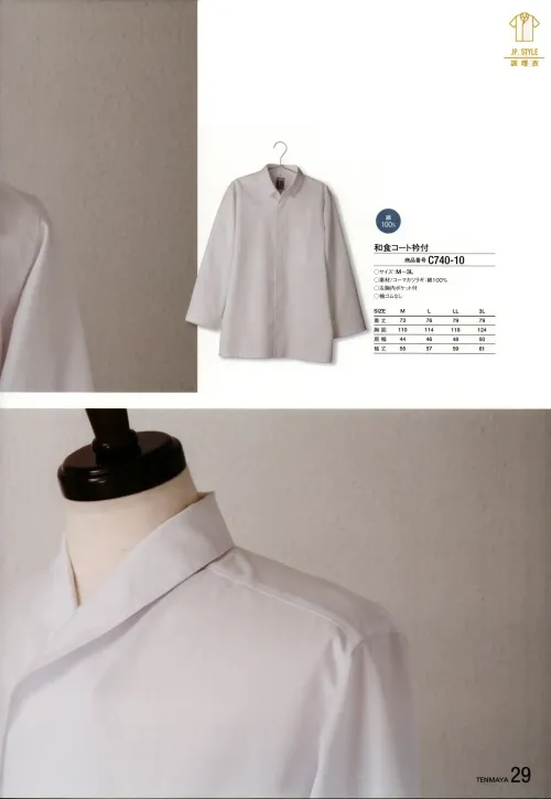 和食コート衿付 傳馬屋C740-10のサイズ表