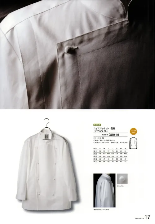 C810-10 シェフジャケット 長袖(オフホワイト)
