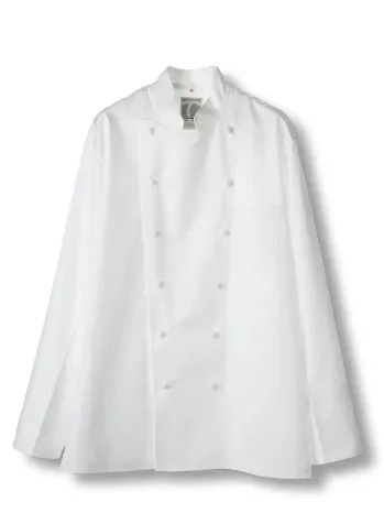 上質な風合いと機能性を兼ね備えたシェフジャケット。高級感のある綿100%素材を使用し、やわらかな肌触りと優れた吸湿性で長時間の厨房作業でも快適に過ごせます。伝統的なダブルボタンデザインに加え、体型をすっきり見せるダーツ入り仕様で、プロフェッショナルな印象を演出します。
