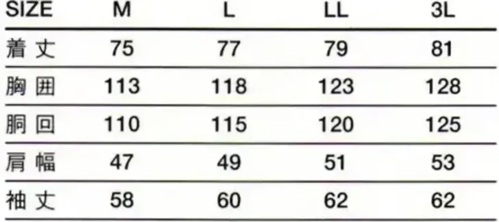 | 色 | サイズ | M | L | LL |