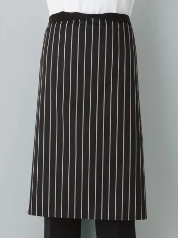 プロフェッショナルな印象を演出するブラックカラーの腰下エプロンです。耐久性とシワになりにくさに優れたツイル素材(ポリエステル65%・綿35%)を使用し、飲食店やサービス業などの現場に最適です。