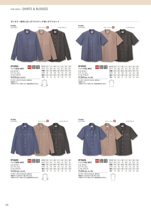 シャツ(長袖) アルベチトセEP-8904のサイズ表