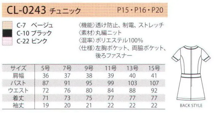 丸編ニット:高い伸縮性とソフトな風合いで、動き易く肌さわりが良い。また、シワになりにくい素材だからイージーケアです。