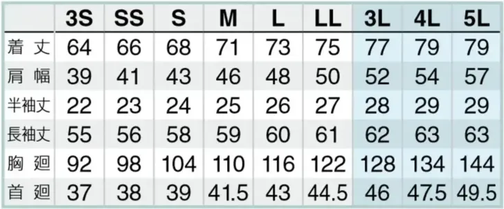 ・サイズ:3S~5L