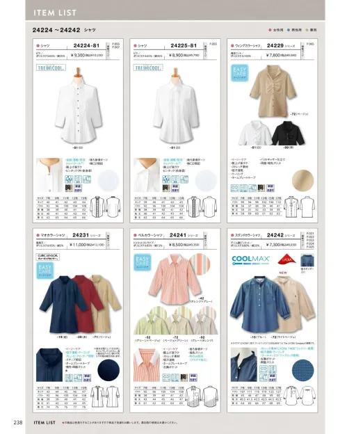 スタンドカラーシャツ ボストン24242-72のサイズ表