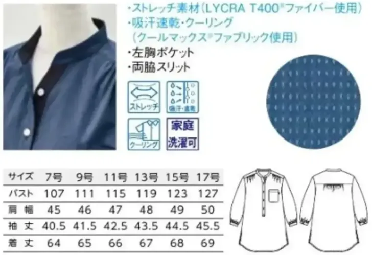 ■素材特長ストレッチ(LYCRA T400®ファイバー使用)・吸汗性・速乾性・クーリング(クールマックス®ファブリック使用)・家庭洗濯可能