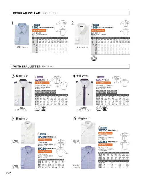 メンズカッターシャツ(裄丈74・76) ダルトン1509-Aのサイズ表