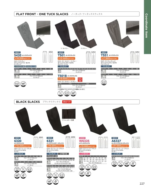 ハイウエストスラックス ダルトンA6327のサイズ表