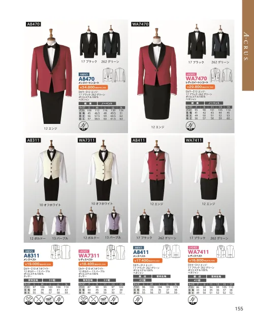 メンズベスト ダルトンA8311のサイズ表