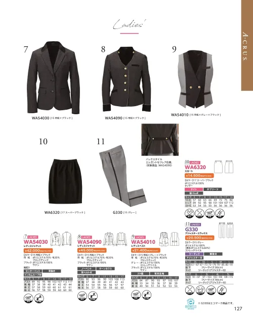 レディスベスト ダルトンWA54010のサイズ表